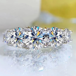 2,12 Karat runder Moissanit 5 Stein Ewigkeit Verlobungsring 14k weiß vergoldet