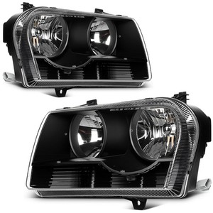 Headlights Assembly For 2010-2005 Chrysler 300 2.7L 3.5L Black Housing Pair