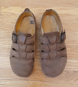 Haflinger braune Schuhe Damen 6/37 Schnallenriemen Pantolette Clogs Kork Komfort Slipper