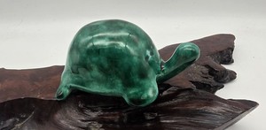 Vintage handgefertigte glasierte Keramik grüne Schildkröte Figur