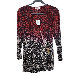 Calvin Klein mehrfarbig rot Schlangenhaut Print Faux Wickel Bluse Top Gr. XL *neu mit Etikett* CHF 27,32