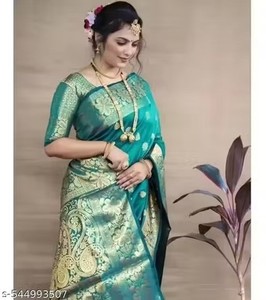 Indischer Banarsi Damen Seidensari mit unbestickter Bluse festlich Partykleidung Sari CHF 24,15CHF 30,56