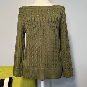 Ralph Lauren Pullover Pulli grün Seide Zopfmuster U-Boot-Ausschnitt