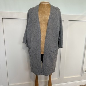 Halogen 100% Kaschmir Strickjacke vorne offen Damen Einheitsgröße grau 1/2 Arm