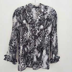 Crown & Ivy langes Glockenärmel-Top Damen Größe PXL rot blau Blumenmuster Rundhals neu mit Etikett CHF 15,27