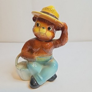 Vintage Norcrest Smokey der Bär Keramik Münze Sparschwein auf Baumstumpf Halteeimer