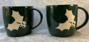 Set of 2 Starbucks "Holly" Christmas Mug Cup New 2011