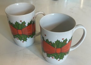 2er Set - Fitz & Floyd "Holly Wreath" Tassen - 4" große Weihnachtstassen = Vintage