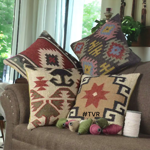 Pillow Cover Kilim Rug Vintage Aztec Multicolor Wool Jute Cushion Case 18x18"