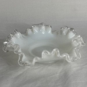 Vintage FENTON Standfuß Silver Crest Milchglas Bonboniere gekräuselte Kanten 6"