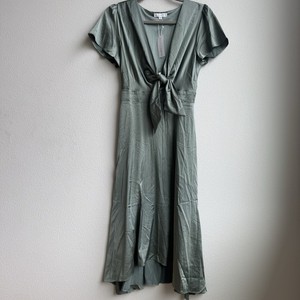 Neu mit Etikett Baltic Born Mohnblumen-Midikleid Damen M Satin Eukalyptus salbeigrün vorne zum Binden