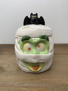 Vintage Halloween Mumie Keksdose Bonboniere mit Deckel schwarz Fledermaus Keramik klein CHF 19,31Bisher: CHF 21,45