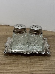 Eden Bliss Glas Salz & Pfefferstreuer Set mit versilbertem Tablett