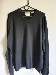 Damen Pullover Wetterfest Vintage Schwarz Baumwolle Kaschmir V-Ausschnitt Gr.XL