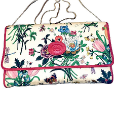 La Regale Vintage Abendtasche creme Perlen Pailletten Wirbel überbackene Clutch