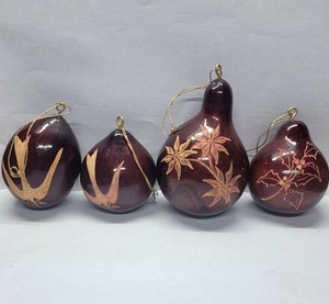 4 1985 geschnitzte bemalte Kürbis Ornamente Weihnachten Stechpalme Vogel Weihnachtsstern Vintage CHF 37,18
