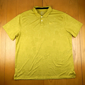 Nike Polo Golf Shirt Herren XL Grün Gelb Dri Fit Jacquard Floral All Over Vapor