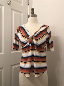 No Boundaries Damen Gr. XL (15-17) Gestreiftes Vorne Knoten V-Ausschnitt Stretchig Weich Top CHF 10,27