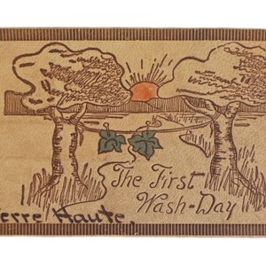Antike Ephemera 1907 Leder Postkarte Humor Waschtag Gruß gestempelt