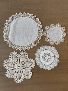 VINTAGE Set of 4 HANDMADE DOILIES, Various Sizes, See Pictures