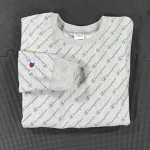 Champion Reverse Weave Damen-Sweatshirt mittelgrau All Over Spell Out Neu ohne Etikett