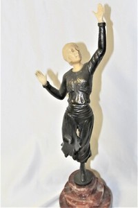 Art Deco Figur Tänzerin Marmorbasis Spelter signiert