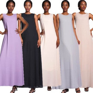 Long Inner Dress Chiffon Maxi Sleeveless Muslim Women Abaya Kaftan Solid Color
