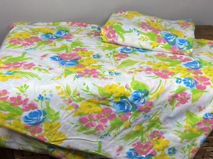 Vintage Bibb Twin flaches Bettlaken MCM hell geblümt rosa gelb Blumen 1960er gebraucht, in einwandfreiem Zustand CHF 17,39CHF 19,32
