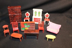 Vintage 6,25" weibliche Puppenstubenpuppe - Augen öffnen/schließen - geklebte Perücke - rot gestreift CHF 9,51