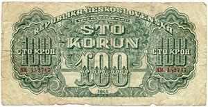 1944 Tschechoslowakei 100 Korun Banknote zirkuliert HM-152747