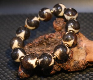 Magische Energie tibetischer alter Achat Ziege Augen 2 Seiten Dzi Perlen elegantes weibliches Armband CHF 70,03