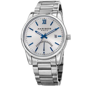 Herren Akribos XXIV AK962SS silber 24 Stunden Anzeige Retrograde Zifferblatt Datum Uhr CHF 57,68UVP CHF 419,06