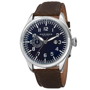 Neu Herren Akribos XXIV AK870BU Tag/Datum Sunray Zifferblatt blau Lederarmband Uhr CHF 46,92UVP CHF 339,24