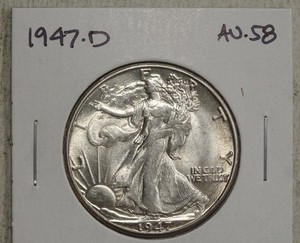 1947-D Walking Liberty Half Dollar, Choice Almost Uncirculated 1112-08