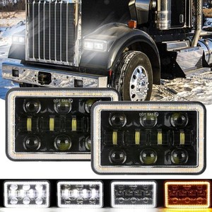 For Peterbilt 379 357 359 378 4x6" LED Headlights Hi/Lo DRL Turn Signal Light 2x
