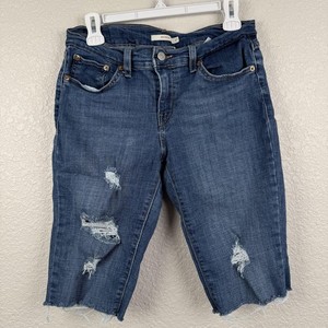 Levi's Denim Shorts Womens 27 (29x13) Blue Boyfriend Distressed Raw Hem Bermuda