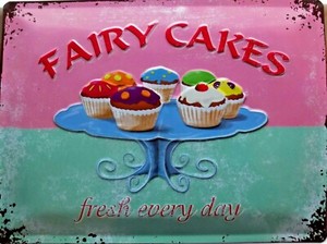 PLAQUE METAL vintage FAIRY CAKES - 40 x 30 cm