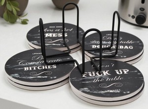 LIFVER Lustige Untersetzer 8er Set - Schwarz Marmoroptik Keramik mit Halter, Korksockel