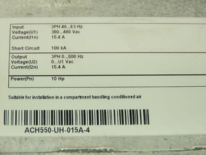 ABB ACH550-UH-015A-4 HVAC VFD regelbarer Antrieb 10 PS 3Ph 480V 15,4A ohne Tastatur