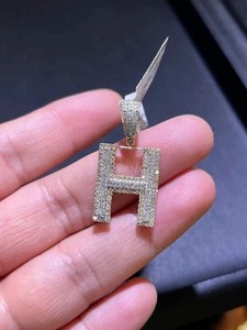 1,5 kt echter Moissanit "H" Anfangsbuchstabe Anhänger Halskette 14 Karat Gelbgold vergoldet