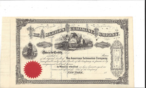 THE AMERICAN SUBMARINE COMPANY......1800'S UNISSUED COMMON STOCK CERTIFICATE