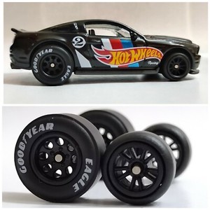 CUSTOM GUMMI REIFEN 5 SÄTZE 1/64 GRÖSSE HEISSRÄDER SHELBY GT500 SCHLANGE SCHWARZ