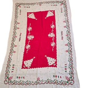 Vintage Weihnachten Tischdecke rot weiß NOEL Stechpalme Tannenzapfen 55x95 Urlaub Party