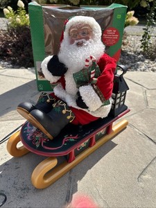 Vintage 1995 Holiday Creations animierter Weihnachtsmann auf Schlitten mit Laterne funktioniert tolles VIDEO CHF 40,41