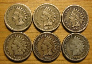 KOMPLETTSATZ ALLE (6) 1859 60 1861 62 63 64 KUPFER NICKEL BÜRGERKRIEG INDIANER CENTS CHF 24,5924 Gebote17Std 55 Min