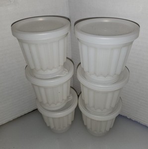 6er Set Vintage Tupperware Mini Jel-ette Tassen Gelierformen, Deckel, Dichtungen, Neu aus altem Lagerbestand