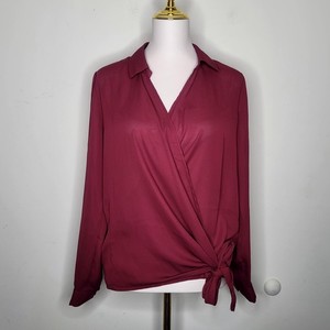 Venus Gr. 8 Burgunderrot Transparent Chiffon Wickelkragen Langarm Top Academia Neu ohne Etikett