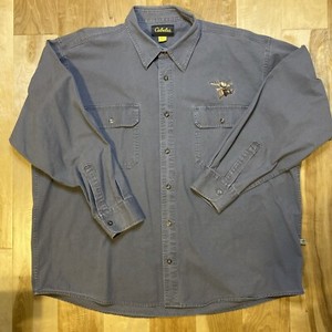 Cabela's Flanellhemd grau Gr. 2XL bestickt Elch Langarm Taschen