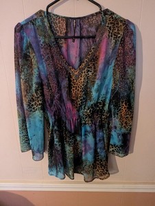 Boho Top Damen Größe PS Grunge Leapard Print Festival Pailletten V-Ausschnitt transparent Bluse CHF 12,69