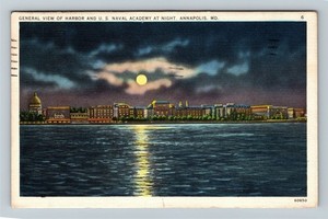 Annapolis MD-Maryland, Hafen & U.S. Marineakademie @ Nacht Leinen um 1938 Postkarte